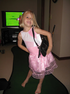 Alex and I love watching "Jon and Kate Plus Eight". The little one are her same age and she thinks it is so neat that there is a show centered around kids her age. I love seeing that I am not the only one that gets snappy with her kids. The episode that we were watching on TiVo was the one where the Gossling family has a style show. Alex decided that she would love to do this. So while I was working out, she kept coming downstairs in different outfits. It was a photo opportunity that I could not pass up.